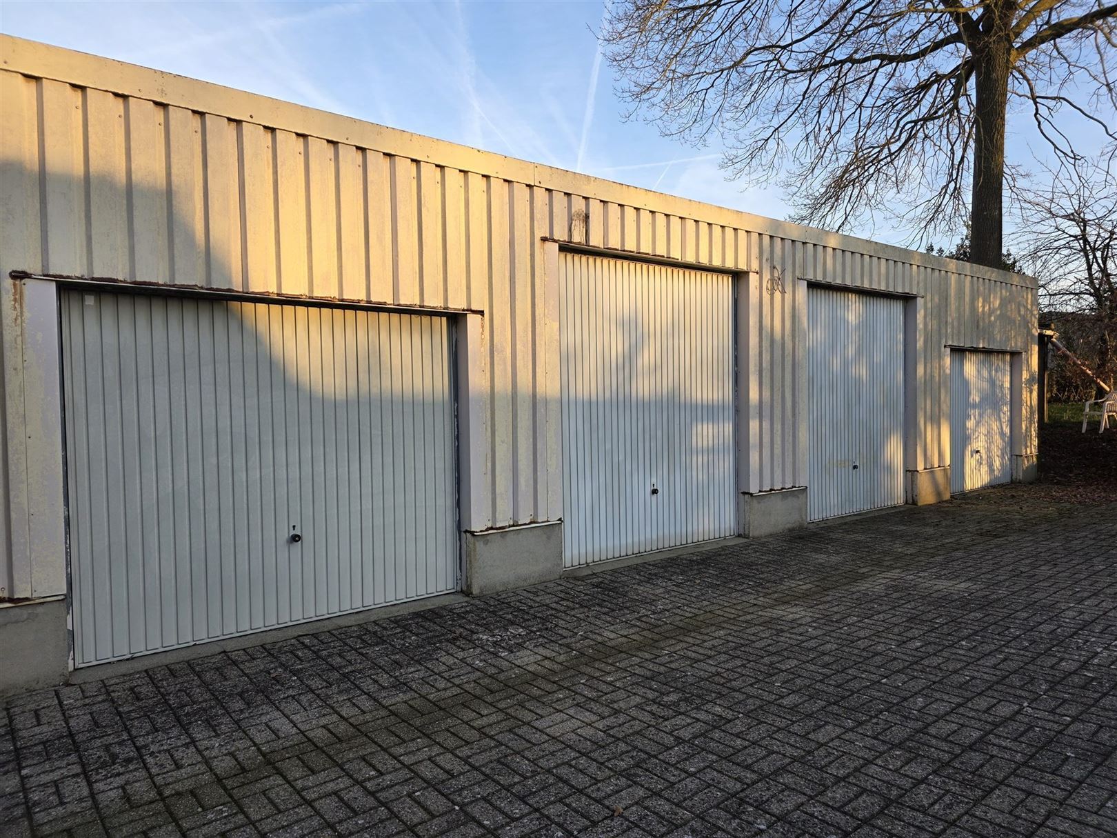 jardin d'entrée, une allée asphaltée pour plusieurs voitures devant la dépendance (hangar/atelier de ± 300 m², places de parking dans la cour, un hall d'entrée avec un grand espace bureau et une chambre au rez-de-chaussée, un grand espace bureau également accessible par une porte d'entrée séparée. Un espace de vie lumineux, un espace cuisine à rénover avec coin petit déjeuner, une salle de bains à rénover, des rangements dans les 4 garages, une spacieuse terrasse plein sud en briques de béton et un jardin clôturé garantissant l'intimité nécessaire, un débarras avec la possibilité de créer un appartement.
