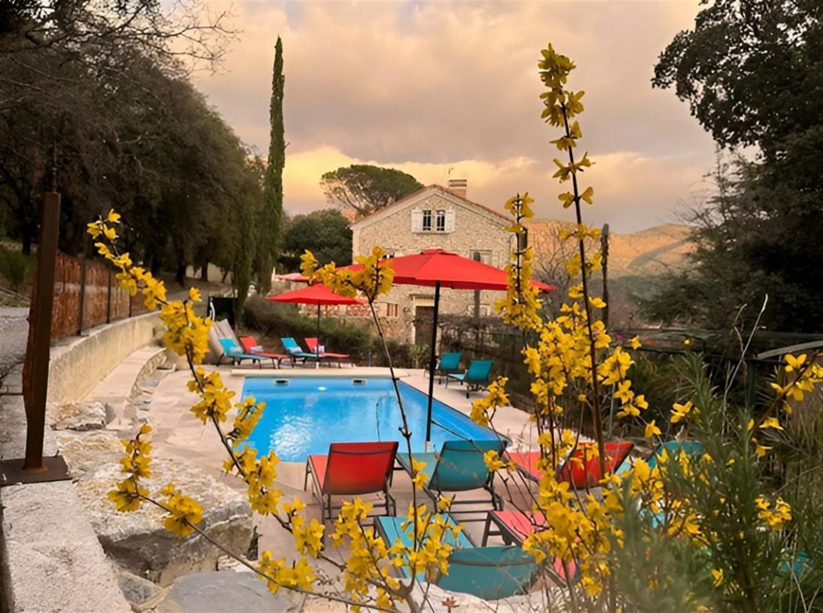Trois garages, une orangerie avec cuisine professionnelle et plusieurs terrasses extérieures viennent compléter l'ensemble.